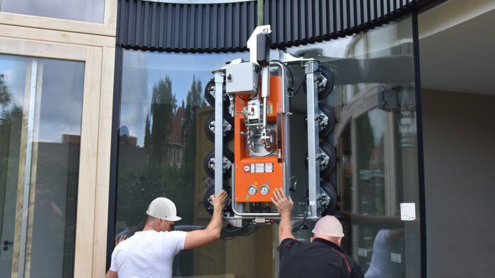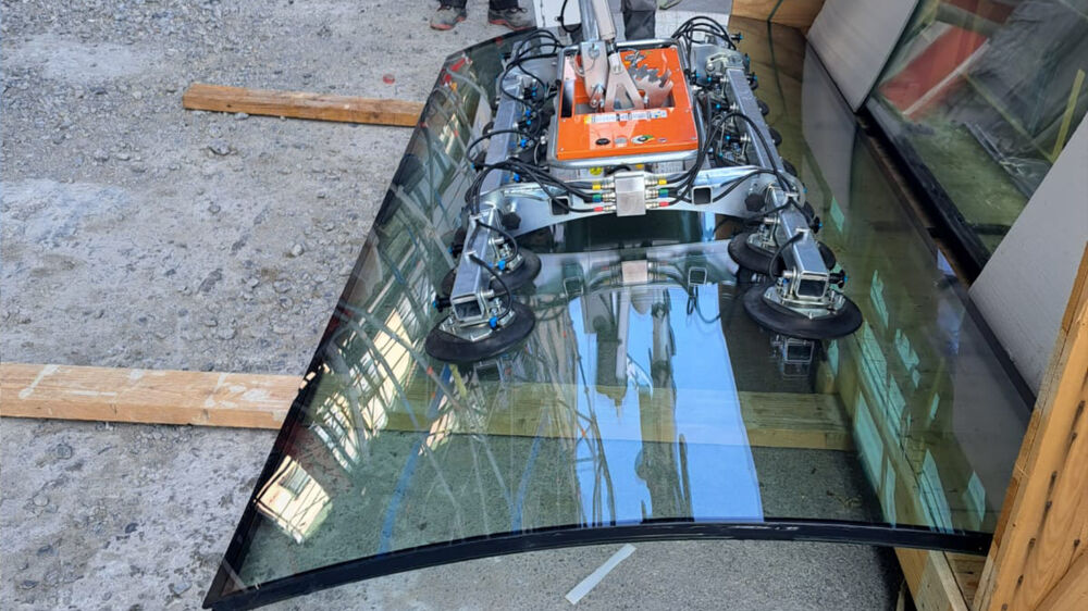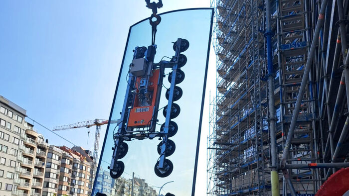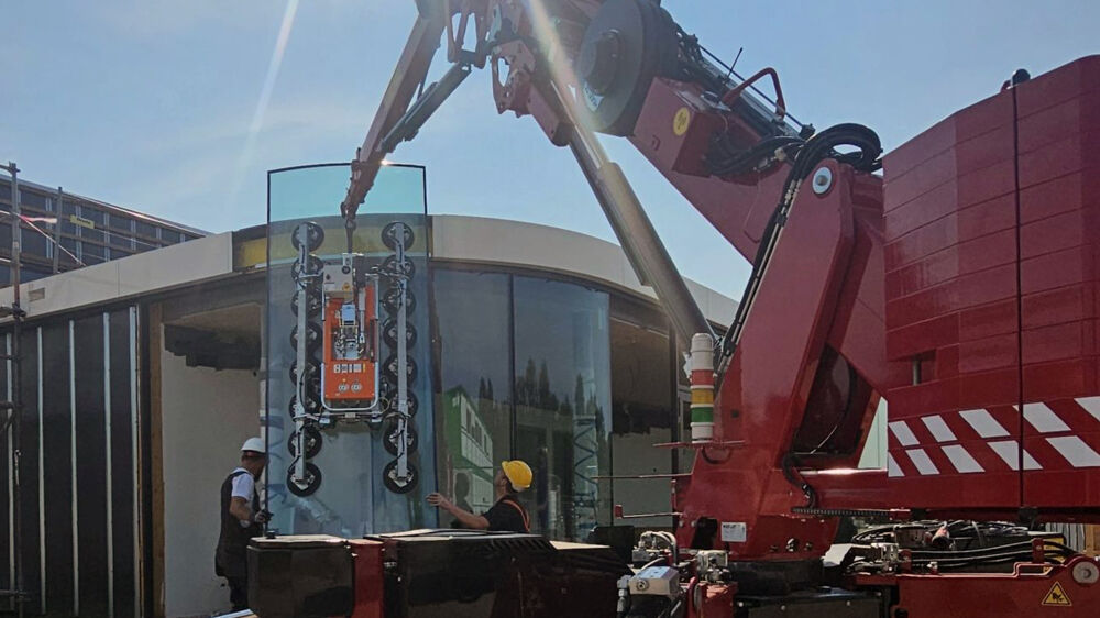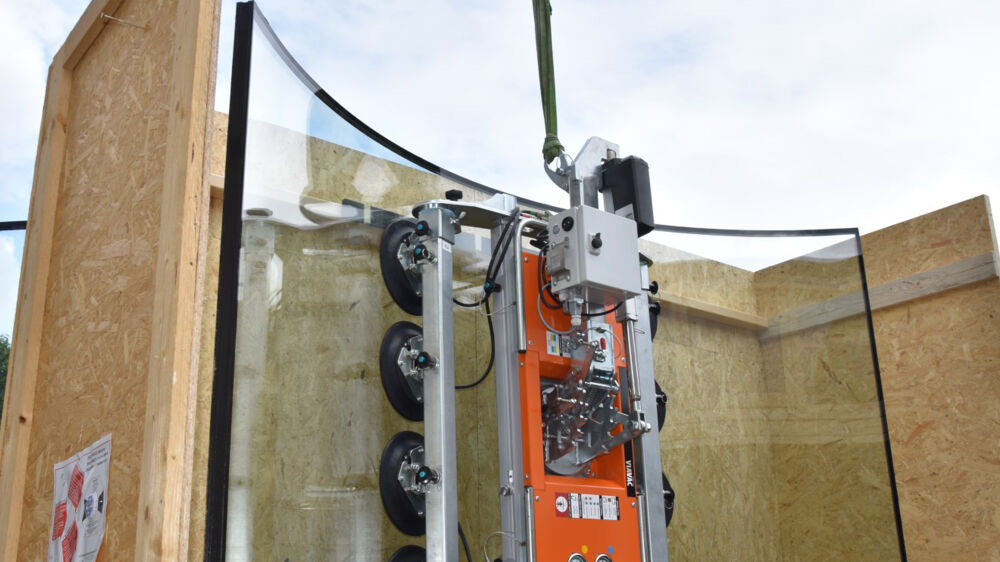 Le VIAVAC GBXL Curved facilite la pose de verre courbé, grâce à des configurations flexibles adaptées à divers besoins de levage.