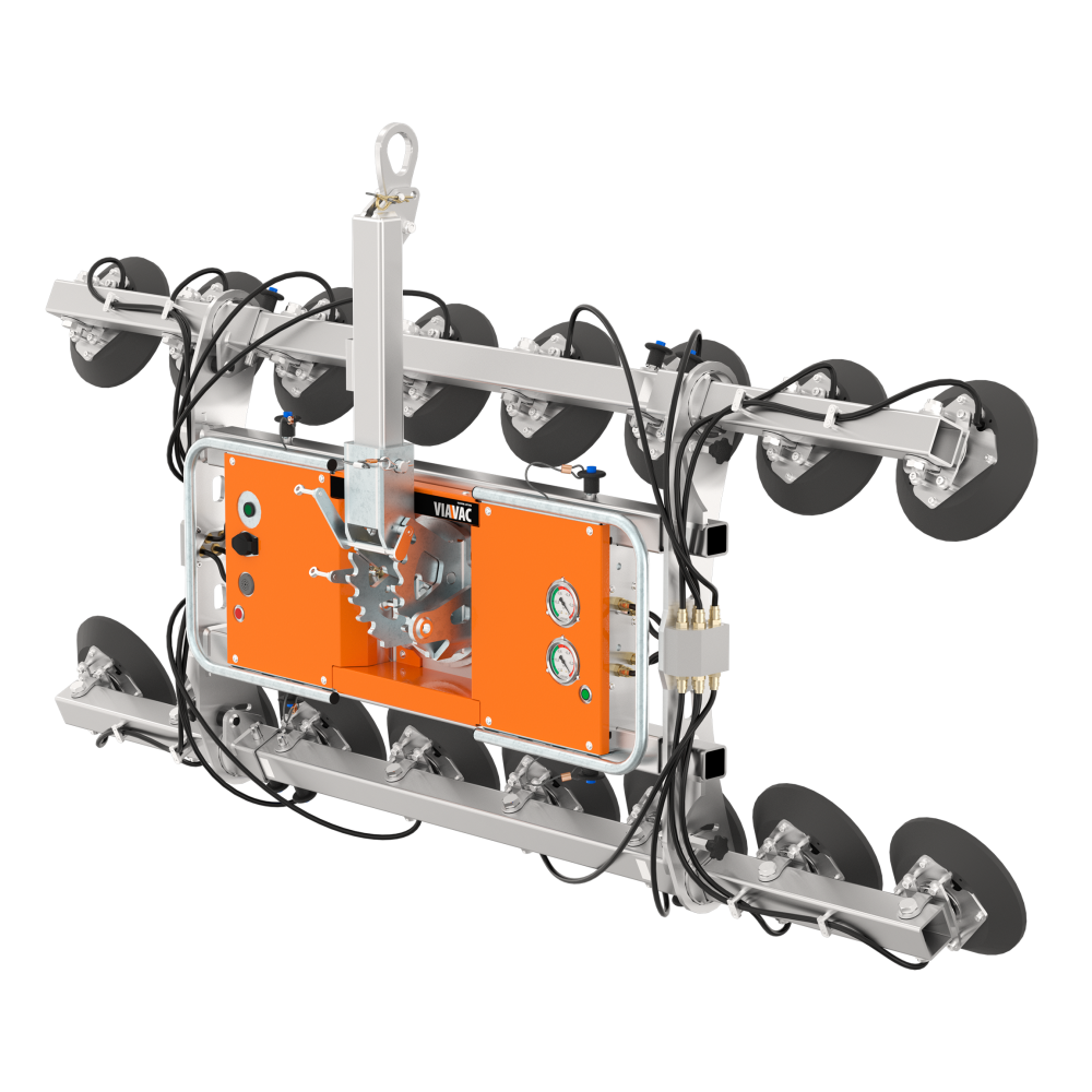 VIAVAC propose également diverses solutions pour installer du verre de manière sûre et efficace dans des endroits difficiles d’accès, tels que des espaces restreints ou sous des débords. La sécurité est primordiale ; nos palonniers à ventouses pour verre respectent des normes européennes strictes et sont équipés de deux circuits de vide indépendants, offrant ainsi une sécurité accrue lors de l’utilisation.