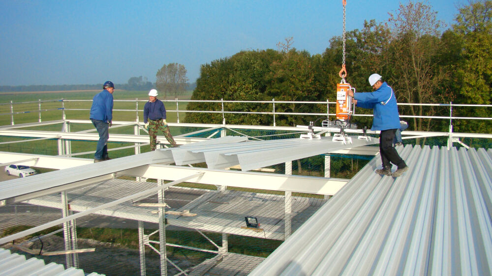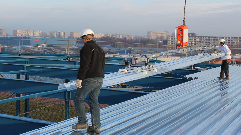 Le CladBoy est depuis de nombreuses années un choix fiable pour la pose de panneaux sandwich. Chez VIAVAC, nous avons élargi l’application, ce qui permet également de poser facilement des panneaux de toiture en acier. Cela s’applique aussi bien aux panneaux pour toiture froide qu’aux supports d’étanchéité ayant une hauteur de profil supérieure à 100 mm. Cette innovation rend le travail de levage lourd superflu et facilite considérablement le processus de montage. De plus, moins de personnel est nécessaire et les projets peuvent être achevés en moins de temps, ce qui entraîne des coûts de montage plus faibles.