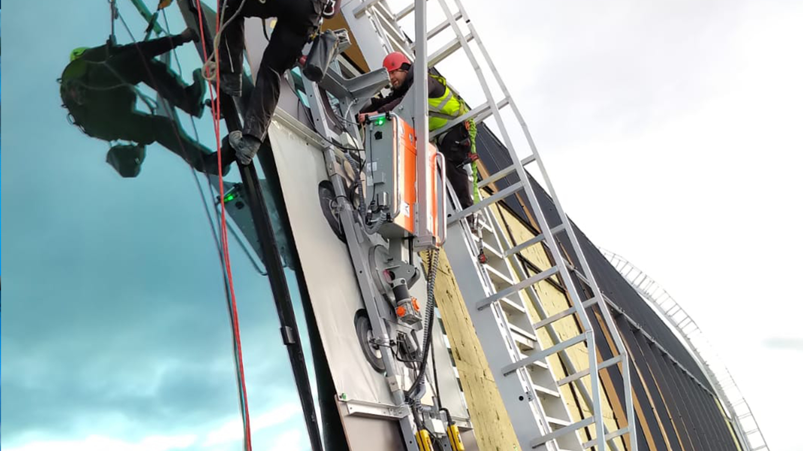 En collaboration avec Octatube, VIAVAC a développé le VIAVAC GBH, un palonnier à ventouses pour verre spécialement conçu pour la manipulation des grands panneaux de verre. Cette machine peut non seulement soulever de grands panneaux, mais aussi les tourner à 90 degrés et les plier selon l’angle souhaité. Toutes ces opérations ont été effectuées à une hauteur impressionnante de 40 mètres !