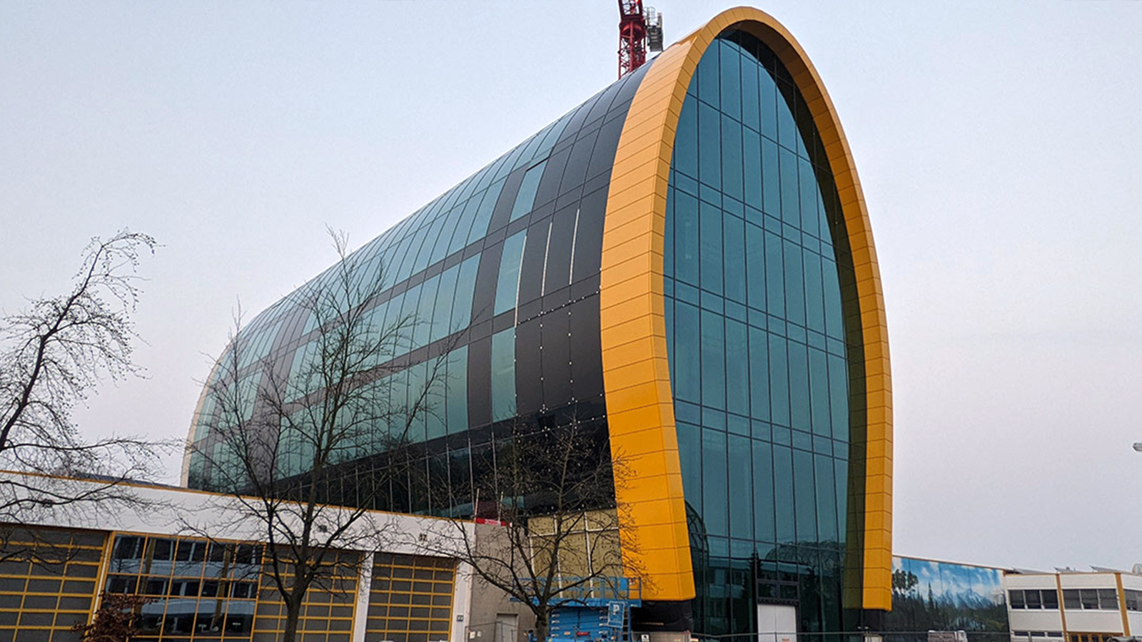 Pour le centre d’innovation du fabricant de poêles Spartherm à Melle, en Allemagne, Octatube a conçu, produit et installé l’ensemble de la façade. Cette façade est composée de panneaux de verre cintrés à froid, dont la majeure partie du verre a été cintrée sur place. Cela a réduit la nécessité de panneaux de verre uniques et a rendu le transport plus efficace, car les panneaux pouvaient être acheminés à plat.