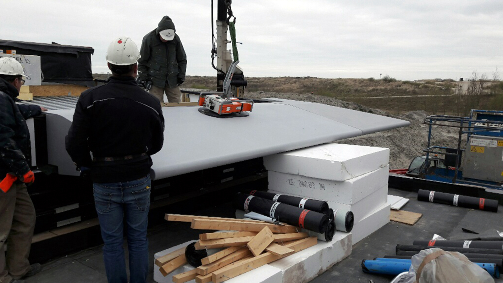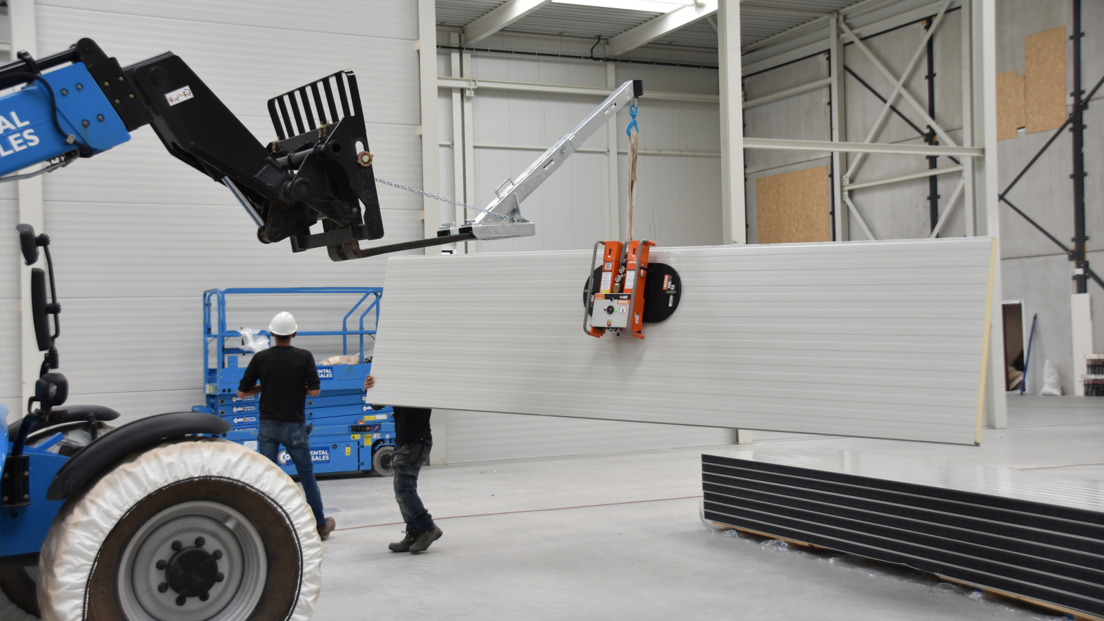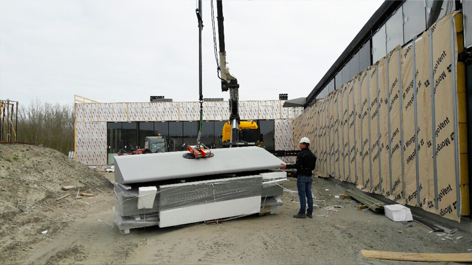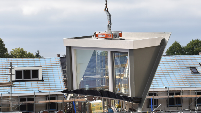 Un excellent exemple de la polyvalence du CladBoy compact est le projet réalisé pour l’entreprise Sprangers, où le palonnier a été utilisé pour l’assemblage d’éléments de bardage en acier d’un pavillon de plage à Oudorp. Grâce au CladBoy compact, les éléments ont pu être installés en toute sécurité et efficacité, sans recourir à des sangles de levage.
