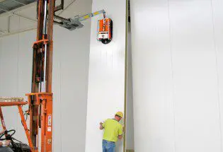 Le CladBoy compact convient à l’assemblage de panneaux sandwich jusqu’à un poids de 750 kg ou une longueur de 12 mètres. L’appareil de levage est également équipé d’un système de sécurité à circuit unique ou double. La batterie a un temps de charge d’environ six heures, après quoi vous pouvez travailler en l’utilisant toute la journée sans problème.