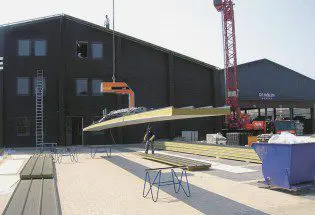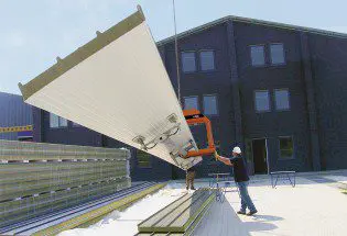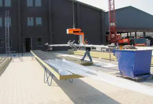 L’appareil de levage a une conception modulaire et peut être rapidement et facilement adapté à différents types de méthodes pour l’assemblage. Avec le RotaBoy, il faut tourner à 180° les panneaux sandwich de toiture d’une longueur maximale de 18,5 mètres et d’un poids maximal de 350 kg sans effort et faire le levage sur le toit par une simple pression sur un bouton. Vous pouvez alors les installer immédiatement sans dommage. Un deuxième palonnier à ventouses n’est pas nécessaire, ce qui rend le processus pour l’assemblage encore plus rapide. En l’espace de quatre heures, un toit entier d’une superficie totale de 450 m² a été étanchéifié.