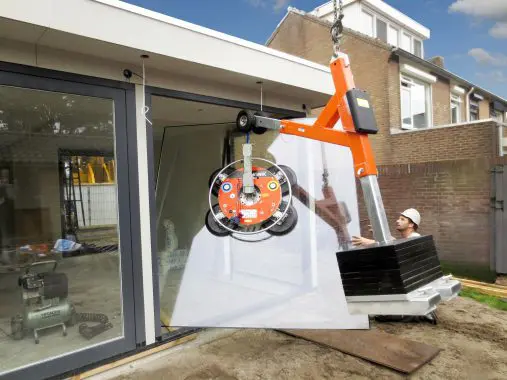 Het slimme hijshulpmiddel voor het plaatsen van glas onder een overstek