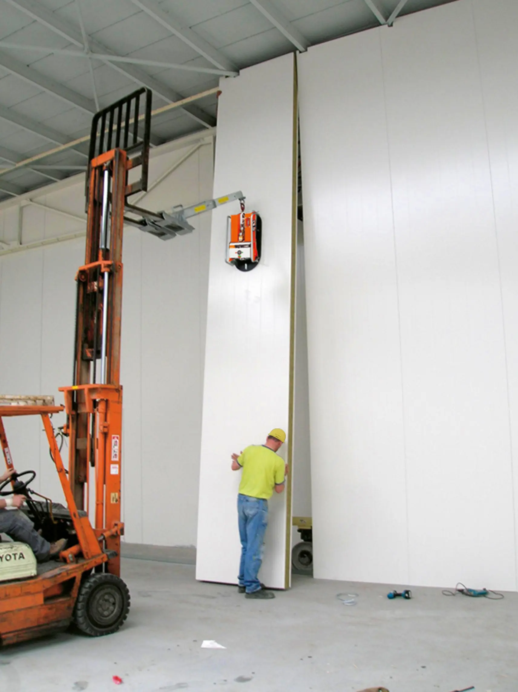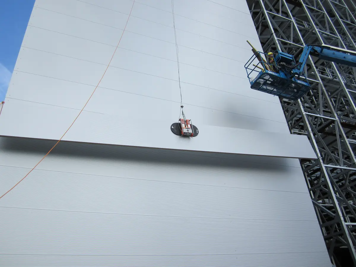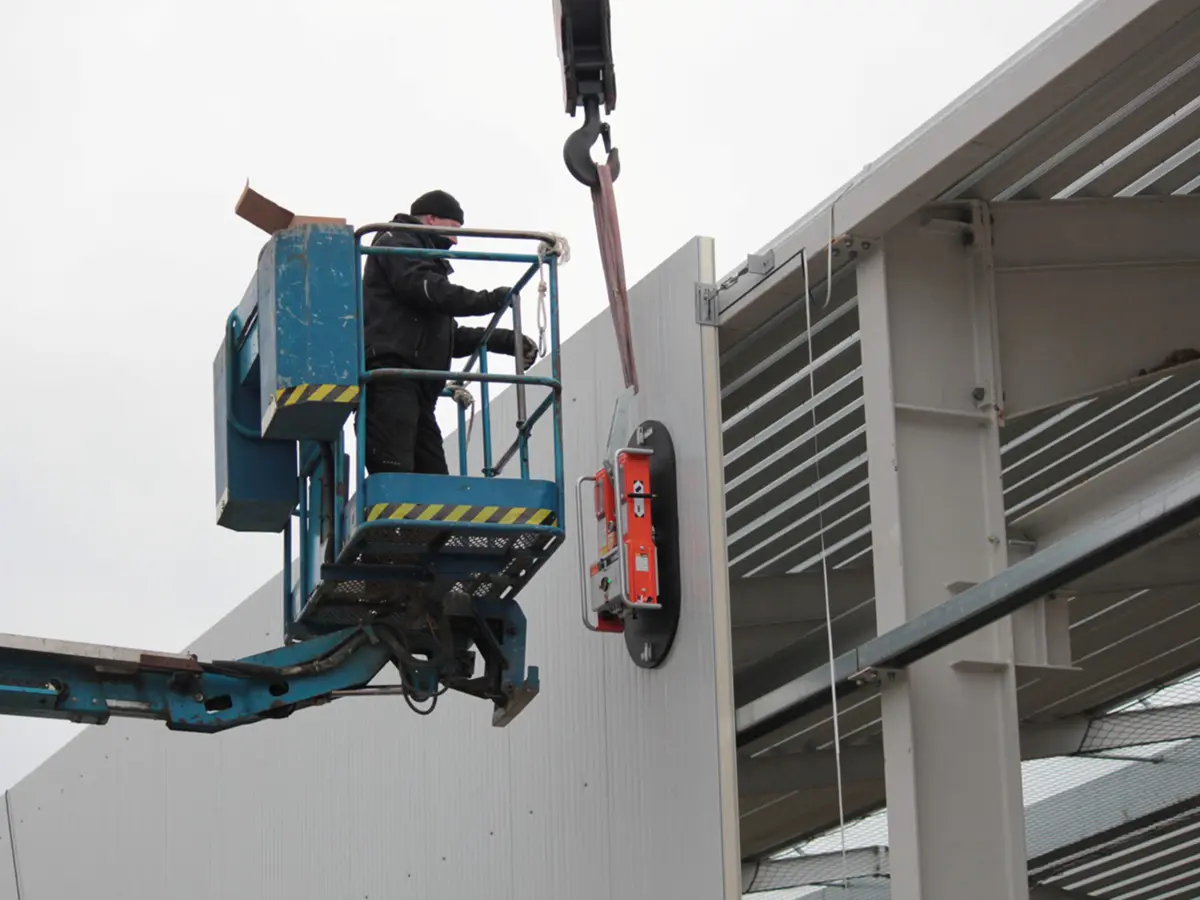 Dit robuuste en solide apparaat is zeer geschikt om binnenwanden of om onder een overstek te plaatsen. Hiervoor wordt de CladBoy compact vaak ingezet in combinatie met de CraneArm. Met de combinatie CladBoy compact, heftruck of verreiker en de CraneArm is het plaatsen van panelen een fluitje van een cent.