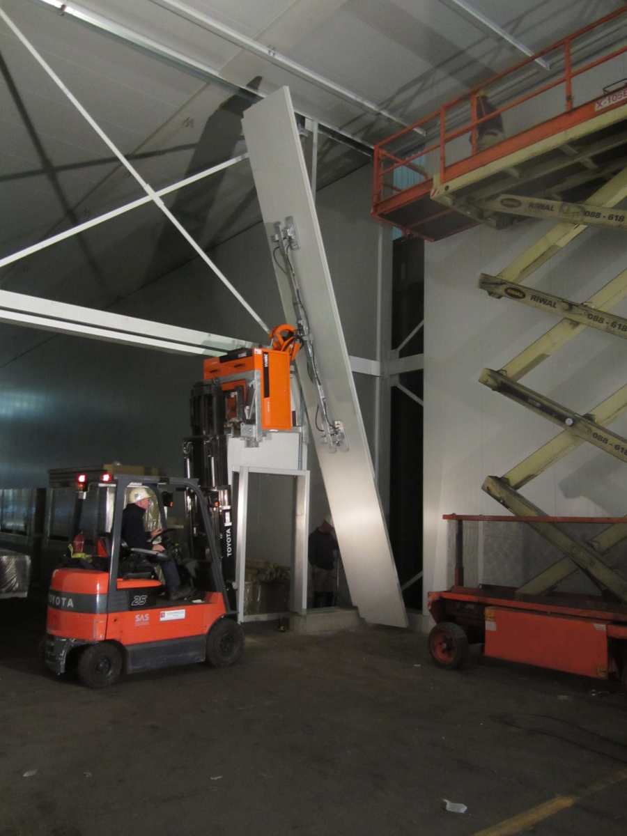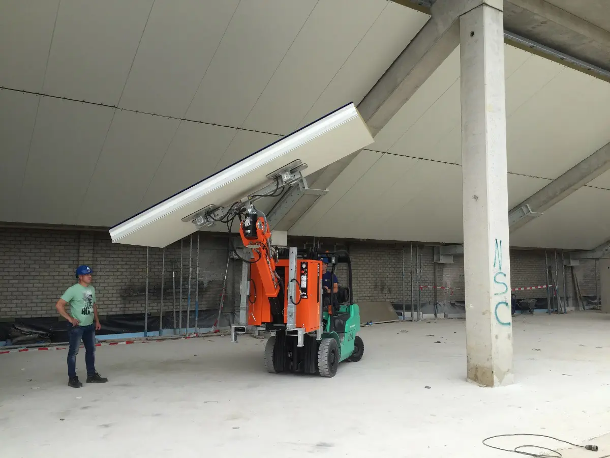 De CladMaster is de vacuümheffer voor het plaatsen van sandwich plafondpanelen met precisie. U kent het vast wel; projecten waarbij de montage bemoeilijkt wordt door bijvoorbeeld een staalconstructie of eerder geplaatst leidingwerk. En nu? De CladMaster biedt dé oplossing om sandwich plafondpanelen op arbotechnische wijze te monteren. De CladMaster is alleen beschikbaar voor verhuur.